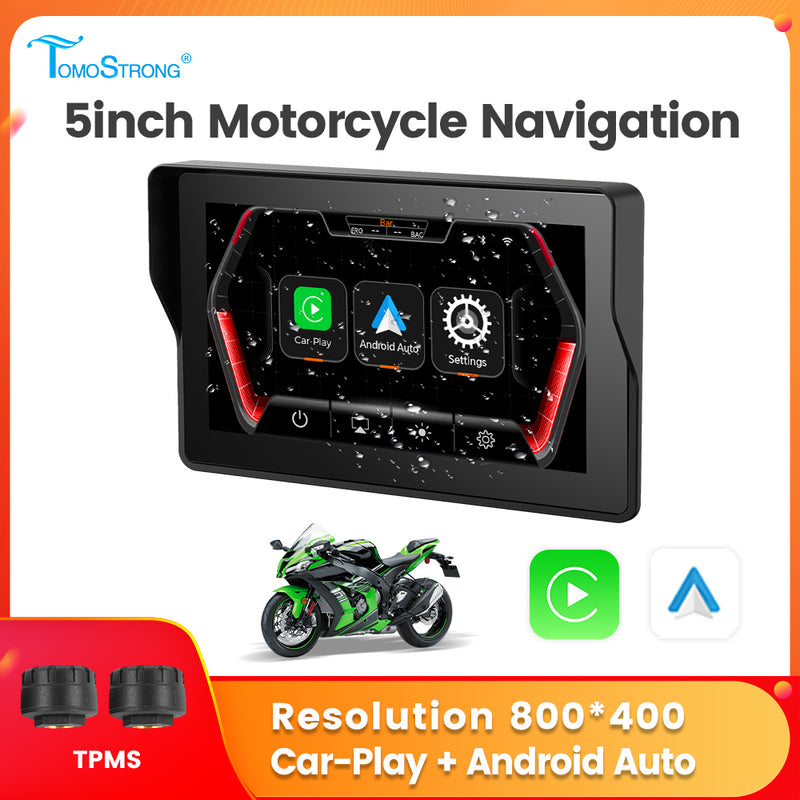 Tomostrong Motorcycle 5 inch Full touch screen 800*480 Linux system Wireless CP/AA IPX7 waterproof Free shipping