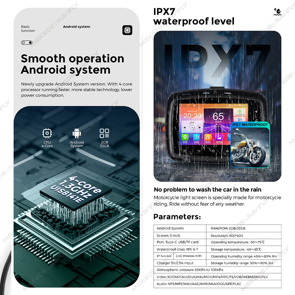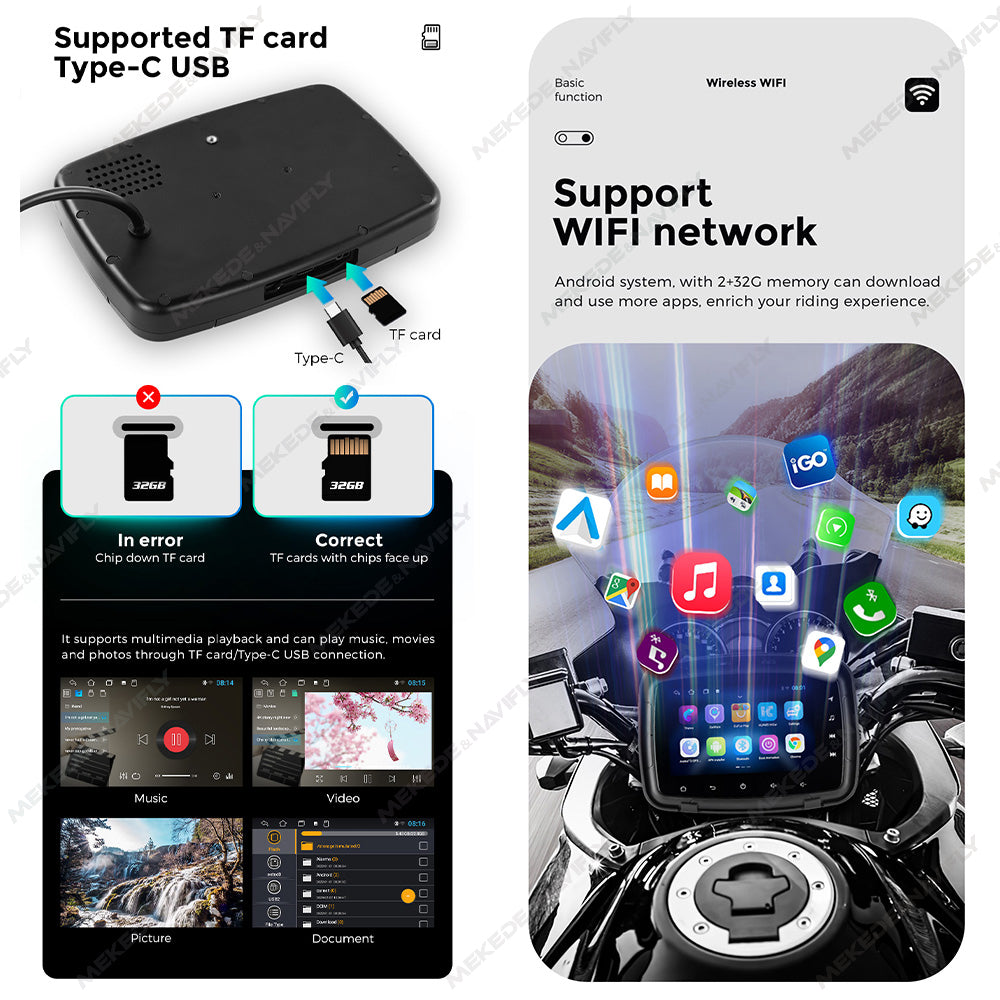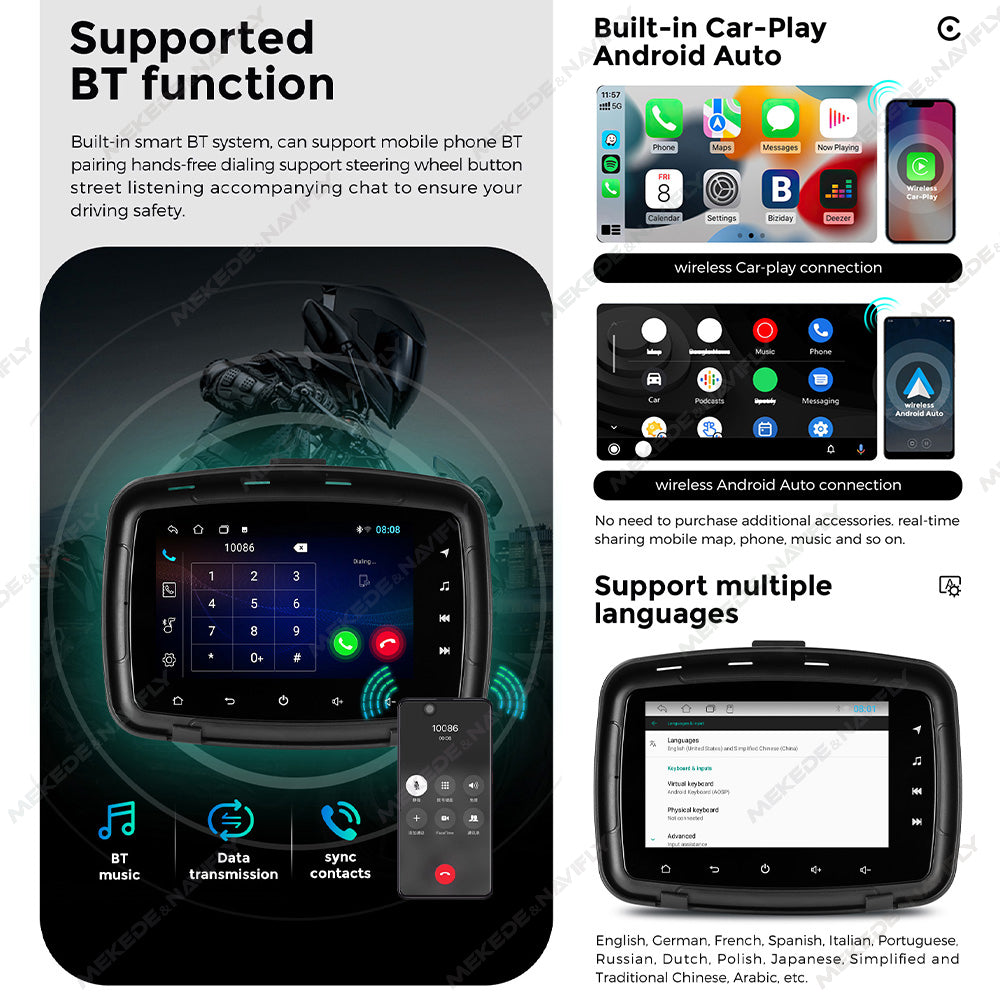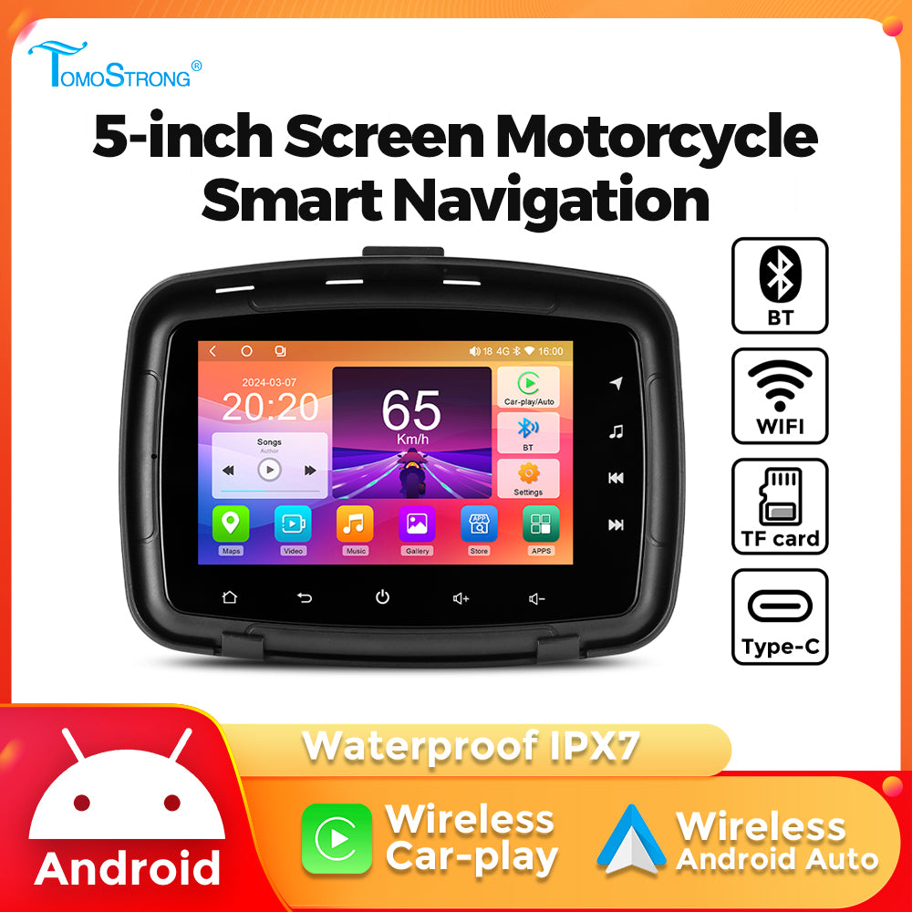 Tomostrong Motorcycle 5 inch Full touch screen Android 4-core wireless network connection Built in GPS Speaker Supports mirror connection Free shipping